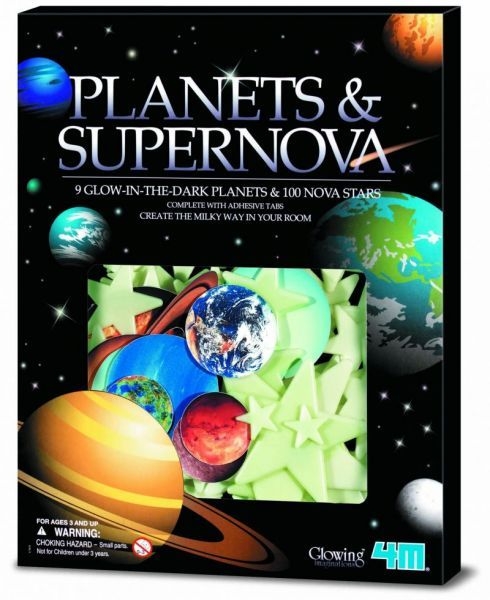 Stwórz dekorację w formie wspaniałej, świecącej w ciemności, Drogi Mlecznej.Zestaw zawierakomplet plastikowych planet Układu Słonecznego i100 gwiazdek o różnej wielkości-planety i gwiazdki świecą w ciemności.Zestaw zawiera równieżdwustronną taśmę do umocowania dekoracji.