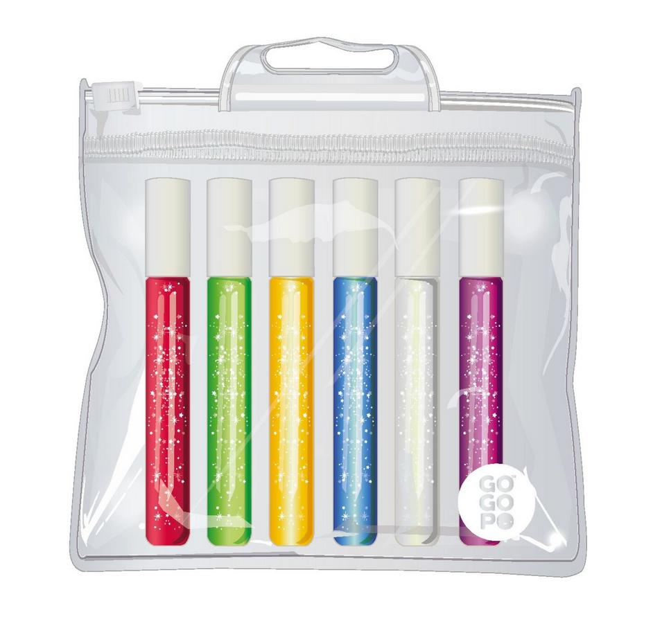 W skład zestawu wchodzi 6 brokatów w sztyfcie o następujących kolorach: