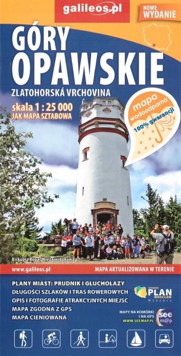 Wodoodporna mapa turystyczna Góry Opawskie w skali 1:25 000 zawiera: