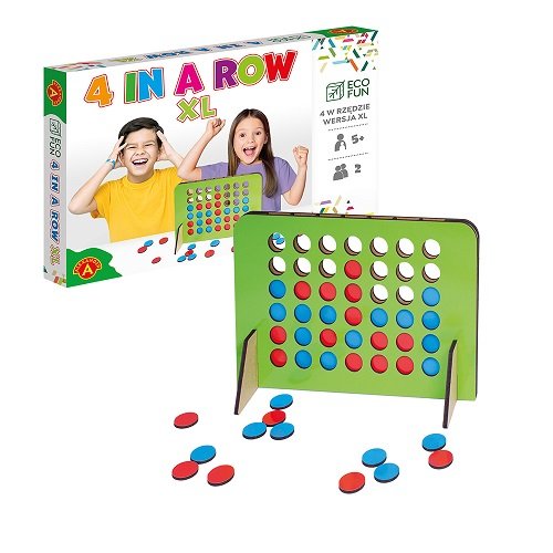 Wyjątkowa drewniana gra dla 2 osób. Celem gry jest ułożenie czterech żetonów tego samego koloru w jednym rzędzie (w pionie, w poziomie lub po przekątnej).