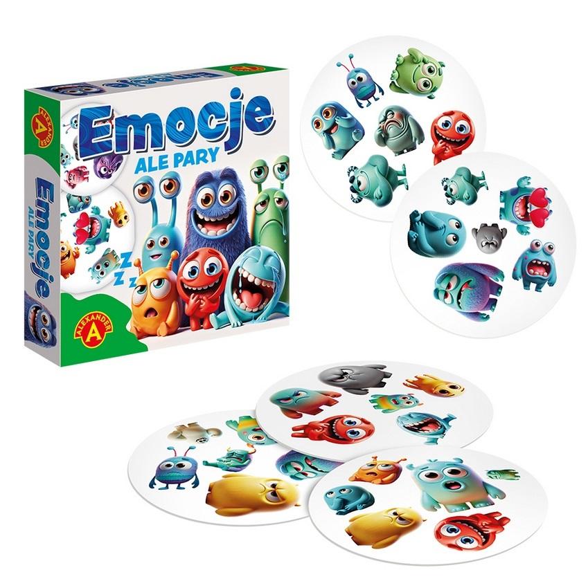 Ale Pary - Emocje to wyjątkowa gra, która poprzez zabawę, może pomóc dzieciom zrozumieć, co czują i pokazać, jak radzić sobie z różnymi emocjami. Gra polega na znalezieniu wspólnego obrazka przedstawiającego emocję na dwóch kartach. Ale uwaga! Emocje mogą różnić się wielkością, co sprawia, że wyzwanie jest jeszcze większe. Gra toczy się w dynamicznym tempie, więc potrzebna jest koncentracja i szybka reakcja.