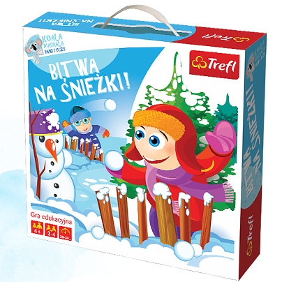 Koala Mądrala uczy i bawi - Bitwa na śnieżki!W śniegu zawsze jest zabawnie, rzucaj śnieżką - kto odpadnie? Gra edukacyjna ,,Bitwa na śnieżki"" to doskonała okazja do zimowych zabaw przez cały rok. Zadaniem graczy jest rzucać śnieżkami w swoich przeciwników i tak poruszać się po śnieżnej planszy, żeby jak najdłużej pozostać w grze. Ten, kto zostanie trafiony śnieżką 5 razy - odpada. Śnieżną zabawę umożliwią 24 żetony śnieżek, a całą rozgrywkę umili namalowana na planszy postać śniegowego bałwana. Bitwa na śnieżki to wesoła gra ucząca najmłodszych spostrzegawczości, podejmowania decyzji i koncentracji. Przyjazna grafika i proste zasady gry idealnie dostosowane są dla dzieci w wieku przedszkolnym i wczesnoszkolnym.Supertrwałość i wygoda!Gry z serii Koala Mądrala bawi i uczy stworzone są z myślą o najmłodszych dzieciach. Wykonane z grubej, wytrzymałej tektury elementy gry dodatkowo pokryte są lakierem UV, dzięki czemu pięknie połyskują i zachowają intensywne kolory, a pudełko, wykonane z trwałej mikrofali i pokryte lakierem UV, doskonale je zabezpiecza. Wygodna rączka daje dziecku swobodę w zabraniu gry wszędzie tam, gdzie chce.Liczba graczy: 2-4Wiek: 4+Czas trwania gry: 30 - 40 min