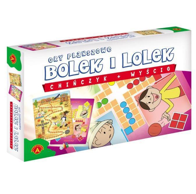 Zestaw zawiera 2 gry z Bolkiem i Lolkiem: "" Chińczyk"" -jest to wersja klasycznej gry losowej, przeznaczona dla 2 do 4 osób. Można w niej stosować pewne taktyczne posunięcia. Ta gra o bardzo prostycz zasadach zawsze wyzwala wiele emocji. W grze wyścig Bolek i Lolek wybrali się na Dziki Zachód. Weź w niej udział i spróbuj dotrzećdo mety na pierwszym miejscu.