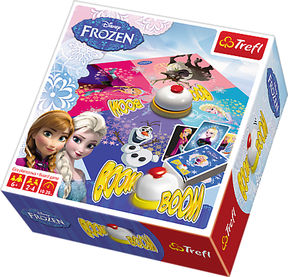 Dokonała zabawa dla fanów filmu animowanego Disneya "Kraina Lodu"! Boom Boom to gra, w której wszyscy grają naraz!. Gracze jednocześnie starają się skompletować zestawy kart. W tym celu wymieniają karty ze swoich stosików z czterema kartami na planszy. Gdy gracz skompletuje stosik - dzwoni dzwonkiem. Zwycięzcą zostaje gracz, który jako pierwszy skompletuje swoje stosiki kart.