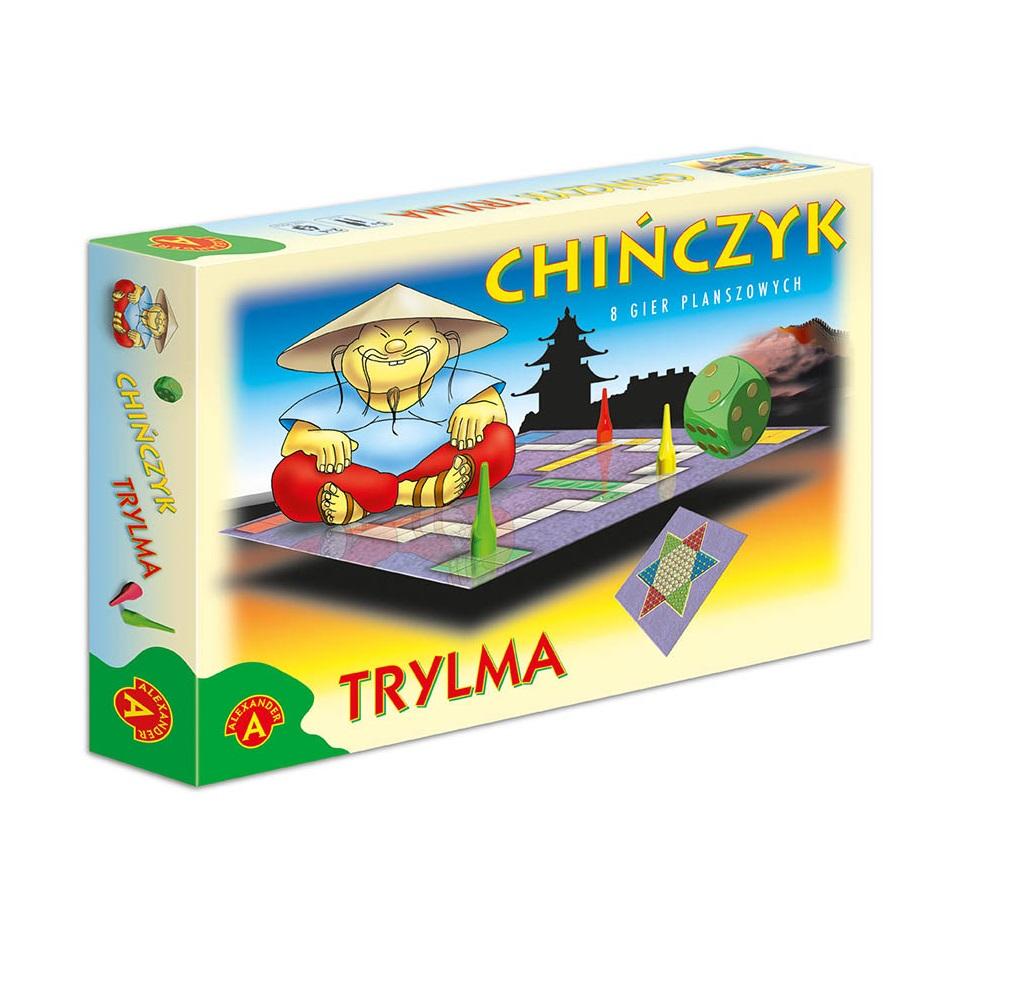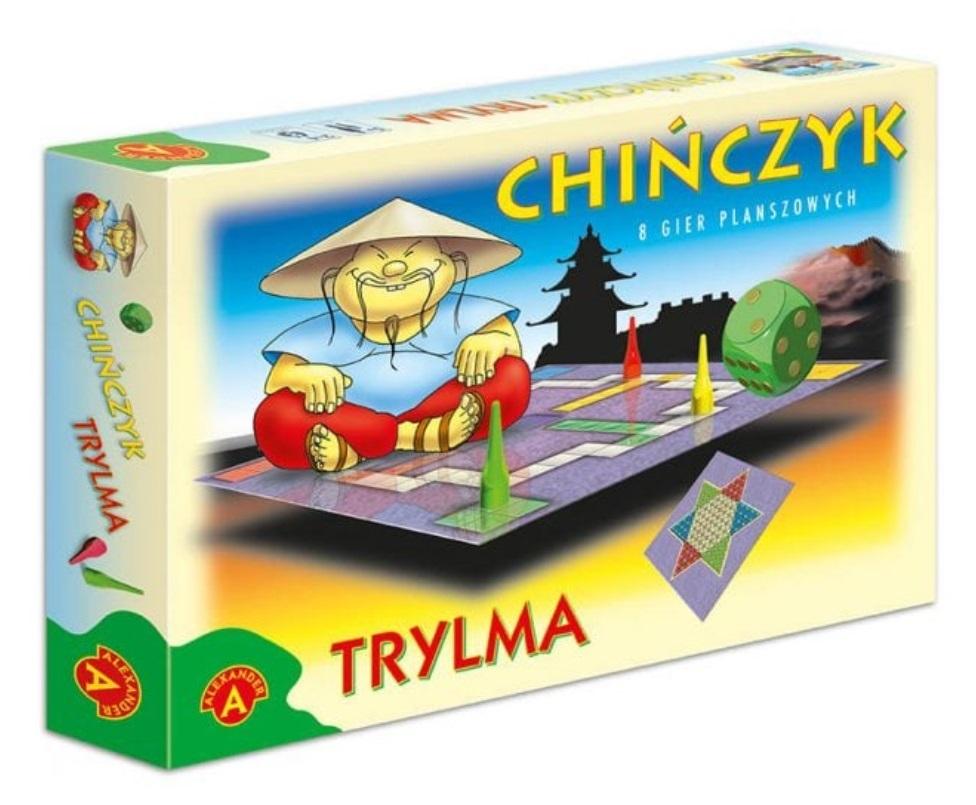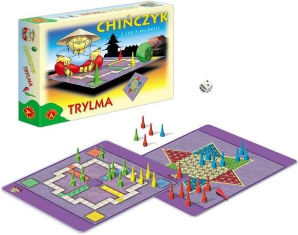 Chińczyk / Trylma - to dwie gry planszowe, znane i cenione na całym świecie od stuleci. Chińczyk jest klasyczną grą losową, chociaż można w nim stosować pewne taktyczne posunięcia. Bardzo proste zasady gry nie ujmują jej atrakcyjności. Trylma jest grą wymagającą od graczy logicznego myślenia i wytężenia wyobraźni. Obie gry to znakomita rozrywka dla dzieci i dorosłych. Gra dla 2-4 graczy w wieku od 4 lat.