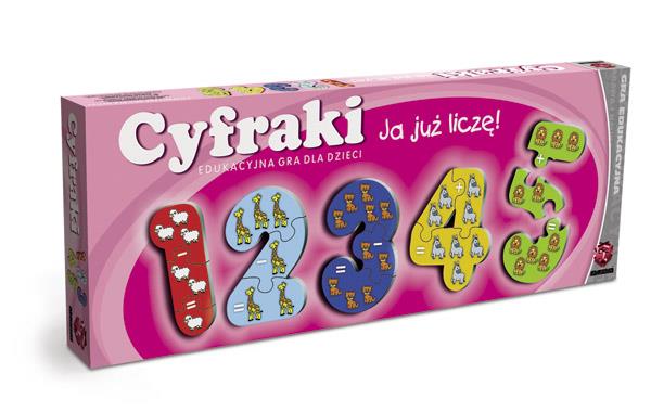 Ilustrowana postaciami zwierzątek gra edukacyjna do nauki liczenia dla najmłodszych. Duże, kolorowe puzzle tworzą kształty cyferek od 0 do 9, na których zobrazowane są proste działania matematyczne z zakresu dodawania i odejmowania. Gra pomaga dziecku zrozumieć czym są liczby, ćwiczy koncentrację zdolności manualne i rozwija spostrzegawczość. Wiek: od 3 lat.