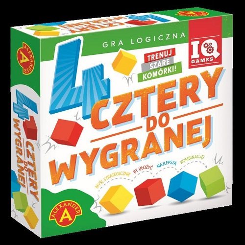 ,,Cztery do wygranej"" to oparta na prostych zasadach gra, która dostarczy satysfakcji każdemu. Do dyspozycji mamy 25 kości w pięciu kolorach. Zabawa polega na losowym bądź wskazanym w instrukcji ułożeniu ich na matrycy. Następnie każdy z graczy wybiera kolor swoich kości. Od tego momentu musimy ułożyć cztery kości w swoim kolorze w linii prostej, wzdłuż, w poprzek lub po przekątnej. Liczy się także ułożenie kości w kwadracie obok siebie. Ruchy wykonujemy zamieniając miejscami swoje kości z kośćmi w innym kolorze. Trudności całej operacji dodaje fakt, że nie wolno przestawiać nam kości przeciwnika. 3 warianty gry sprawią, że nigdy się nie znudzisz.