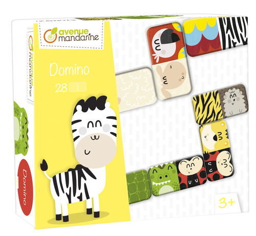 Pudełko zawiera 28 kostek domina i zasady gry.