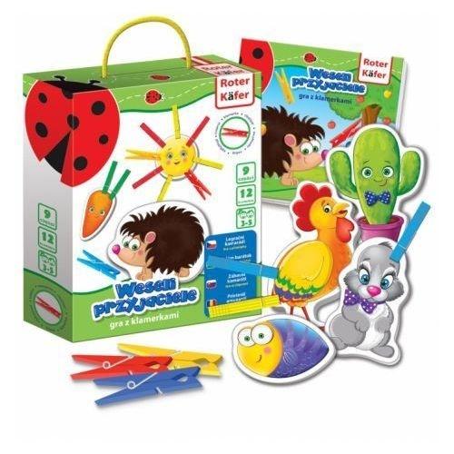 Gra z Klamerkami zawiera figurki roślin i zwierząt, którym zabrakło pewnych elementów. W ich miejsce dziecko musi przymocować kolorowe klamerki. Zielone mogą zastąpić liście, żółte i czerwone - promyki słońca, a w miejsce brakującej płetwy przyczepimy niebieskie.