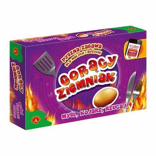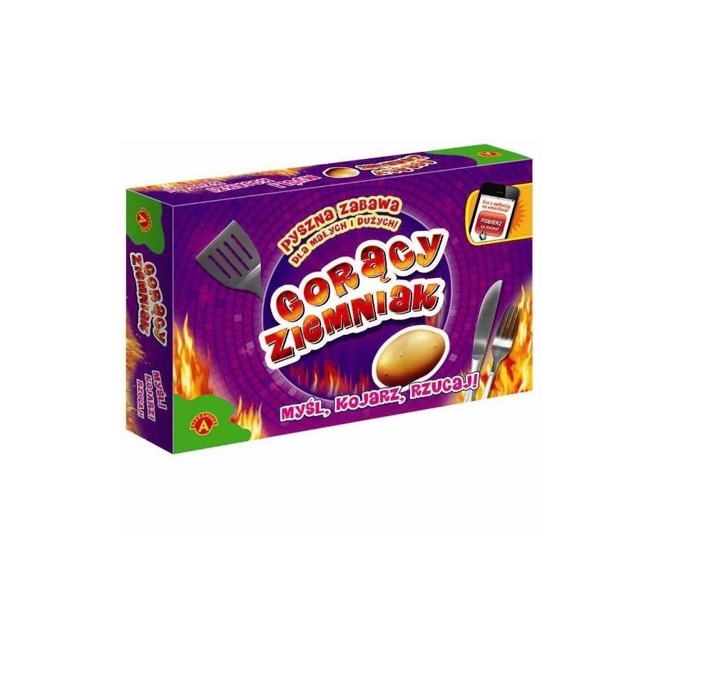 Kto z Was potrafi najszybciej myśleć pod presją czasu? Przygotujcie się, bo zaraz to sprawdzicie. W tej grze masz tylko kilka chwil, by wymyślić odpowiedź na pytanie i rzucić Gorącego Ziemniaka przeciwnikowi. Pozbądź się Ziemniaka zanim upłynie czas i się sparzysz. Odpowiadaj szybko, rzucaj celnie, łap dokładnie i nie spadnij na sam dół planszy.Zawartość pudełka: plansza, Gorący Ziemniak, 110 kart pytań, 4 pionki, bączek, instrukcja.
