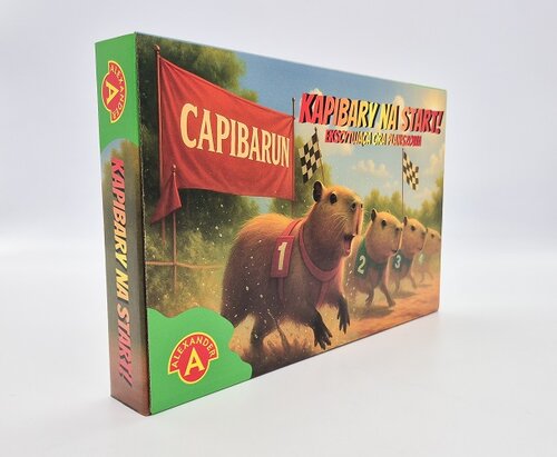 Rozgrywka jest prosta: rzucasz kostką i przesuwasz swoją kapibarę po torze. Ale uwaga – na trasie czekają różne niespodzianki! Błotniste pola mogą Cię spowolnić, sianko doda Ci energii, a woda przyspieszy Twój ruch. Może trafi się też relaks albo… natrętna mucha, która popsuje Twoje plany!