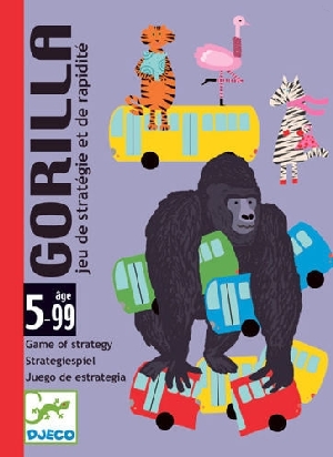Gra karciana. Zawartość: 47 kart (40 kart ze zwierzętami , 1 Jocker , 6 kart z Gorylem).Cel gry - pozbyć się wszystkich kart. Ilość graczy : 3-5. Gra losowa. Walory edukacyjne:ćwiczenie spostrzegawczości. Wiek graczy : 5-99 lat .Wielkość opakowania : 11,7 x 8,5 x 2,8 cm instrukcja : http://www.visionone-kids.pl/DJECO-INSTR/DJ05123_PL.pdf