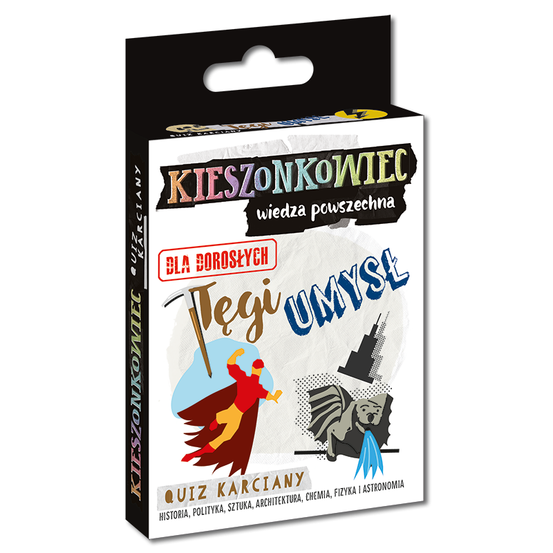 Na te i wiele innych pytań znajdziesz odpowiedź w Kieszonkowcu wiedza powszechna Tęgi umysł. Aż 162 pytania quizowe związane z wiedzą powszechną zapoznają Cię z ciekawostkami z takich dziedzin jak: historia i polityka, geografia, muzyka, sztuka i architektura, film i literatura, chemia, fizyka i astronomia, biologia i medycyna oraz technika.
