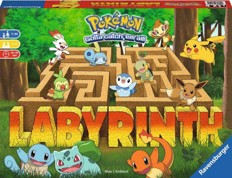 Klasyczna gra Labyrinth w nowym wydaniu - na licencji Pokemon! Szaleńcza zabawa dla całej rodziny. Należy przemierzyć długie korytarze, odkryć wspaniałe skarby i wygrać. Po wyłożeniu karty z labiryntem wszyscy gracze gnają po krętych, zawiłych korytarzach. Przesuwając karty ze ścieżkami, szukają drogi do upragnionego skarbu. Ale uwaga, jeden ruch przeciwnika może zupełnie zmienić układ tunelu! W szalonym labiryncie czekają na was Eeevee, Gengar i reszta Pokemonów! Czy uda się je wam odnaleźć? Z pomocą nadchodzi Pikachu, Squirtle, Charmander i Bulbasaur! Przesuwaj kafle labiryntu, aby dostać się do Pokemonów z Pokeball i złap je wszystkie! Następnie wróć na pole startowe, by wygrać! Labirynth - to światowy klasyk, który zachwyca pokolenia od 35 lat! Ekscytująca gra, w której to ty musisz odkryć prawidłową drogę!