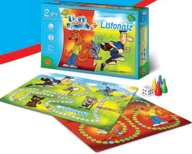 Proste gry planszowe dla najmłodszych, w których ozwycięstwie decydują szczęśliwe rzuty kostką.