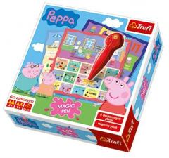 Magic Pen - Świat PeppyMagic Pen Świat Peppy to fascynująca gra, która stymuluje rozwój dziecka. Bawiąc się, dziecko ćwiczy spostrzegawczość, wyobraźnię i logiczne myślenie.Zawartość pudełka:6 dwustronnych planszMagiczny pisakInstrukcja
