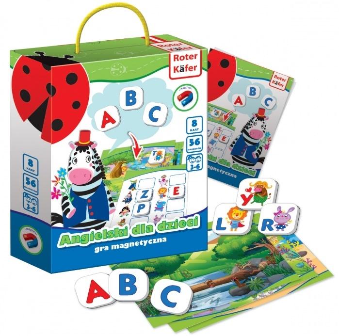 Gra z magnesami do nauki języka angielskiego pomoże dziecku podczas zabawy nauczyć się liter alfabetu angielskiego, zapamiętać ich nazwy, zilustruje użycie liter w słowach. A ponadto, wzbogaci zasób słownictwa dotyczący nazw zwierząt w języku angielskim.