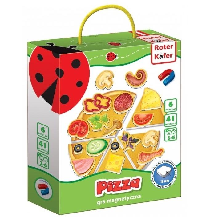 Zestaw: 4 kawałki pizzy, 2 tosty, 41 magnesowych składników.