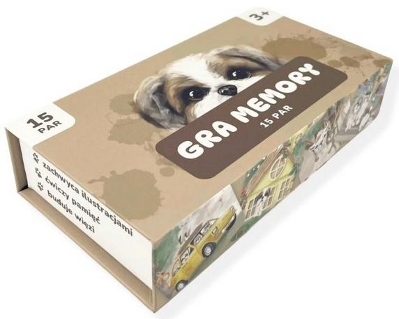 Klasyczna gra pamięciowa w wyjątkowej odsłonie! Memory z uroczymi ilustracjami Magdy Pakiet, inspirowane serią wartościowych książek Kawa dla dzieci autorstwa Anny Załęckiej. Zestaw zawiera 15 par z postaciami i motywami z przygód Kawy – sympatycznej suczki rasy shih tzu.