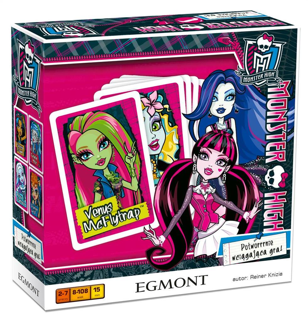 Zagraj w najnowszą grę z bohaterkami Monster High. Podczas gry zdobywać będziesz karty z postaciami. Zdobądź 4 postacie jako pierwsza i wygraj grę.Autorem gry jest słynny twórca gier planszowych Reiner Knizia.♦ Proste zasady♦ Emocjonująca rozgrywka♦ Aż 14 postaci ze świata ,,Monster High