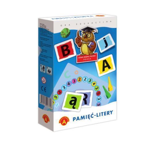 W grze"" Pamięć - litery"" wygrywa ten, kto najlepiej zapamięta położenie odpowiednich par, odkrytych na chwilę, spośród wszystkich tabliczek leżących na stole rewersem do góry.Gra skierowana jednocześnie do dzieci i dorosłych ,jest świetnym treningiem pamięci i spostrzegawczości. Gracze najmłodsi przy okazji utrwalają sobie zapis głosek pisanych małą i dużą literą. Gra ma również drugi rozbudowany wariant z dodatkowymi rekwizytami, wzbogacająymi atrakcyjność i emocje podczas zabawy.