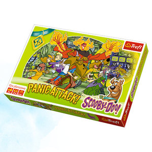 Panic Attack!Scooby-Doo po raz kolejny stara się rozwikłać straszne zagadki. Niestety, przeszkadza mu w tym przerażający duch, który wzbudza w Scoobym paniczny strach. Pomóżcie mu pokonać przerażenie i zdemaskujcie wszystkie potwory!Wraz z innymi graczami uciekajcie Scoobym przed płonącym duchem. Korzystajcie z pomocy Kudłatego, Welmy, Daphne i Freda aby sprawnie rozwiązać zagadki. Miejcie się na baczności, nigdy nie wiadomo, gdzie następnym razem pojawi się duch!Kto z Was pomoże Scoobyemu na tyle opanować strach, aby rozwiązał najwięcej zagdek i zdobył najwięcej uznania wśród swoich przyjaciół?Zawartość pudełka: plansza do gry 2 pionki: Scooby-Doo i duch 2 podstawki pod pionki 45 żetony kostka do gry instrukcja