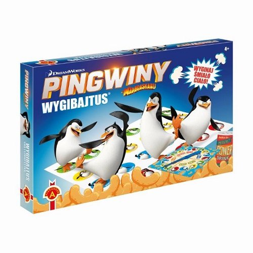 Wyginasz śmiało ciało? Zaraz sprawdzimy czy jesteś z gumy, potrafisz stać na ręce i prawej nodze nie tracąc równowagi. Poznaj prawdziwy trening, ułożony przez Kowalskiego i Skippera, godny najlepszych agentów. Czy jesteś gotowy, by zagrać w ""Wygibajtusa""? ""Pingwiny z Madagaskaru Wygibajtus"" to gra, w której wszystko zależy od wygimnastykowania zawodników. W zestawie znajduję się tablica ze wskazówka, która pokazuje na jakim polu gracze muszą postawić swoje stopy i dłonie. Gracz, który nie jest w stanie zająć wskazanego miejsca - odpada. Wygrywa ten zawodnik, który wykazał się najlepszą sprawnością fizyczną, wygimnastykowaniem i miał najwięcej szczęścia przy losowaniu. Gra jest doskonała rozrywką dla dzieci i dorosłych, zapewnia wiele emocji i gwarantuje ruch poprzez zabawę.Zawartość pudełka: mata do gry, tarcza ze wskazówką, instrukcja.