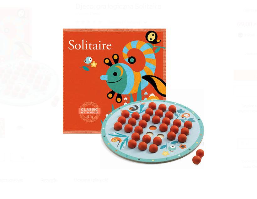 The classic game of solitaire revisited by Djeco. Contains 1 board and 32 pieces Design Regis Lejonc Players 1 Box 21.5 x 21.5 x 30cm Age 6-99