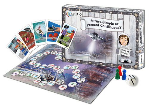 Gra planszowa do nauki angielskich czasów przyszłych. Doskonała forma nauki dla dzieci i dorosłych.Gracze, po trafieniu na określone pola decydują, jakiego czasu użyć w zdaniu. Każde pole zawiera słowa ""klucze"", które pomagają w wyborze. Np. this friday - Present Continuous, probably - Future Simple.