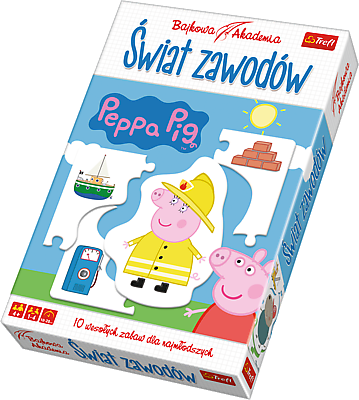 Wesoła gra edukacyjna, która zapoznaje dzieci z pracą w różnych zawodach, a także z narzędziami i miejscami pracy. Podczas gry dzieci dowiadują się, jakie zawody wykonują sympatyczni bohaterowie ze świata Peppy, a także czego potrzebują do pracy. Bawiąc się, dzieci nie tylko uczą się rozpoznawania zawodów, ale także rozwijają logiczne myślenie, spostrzegawczość i sprawność manualną oraz ćwiczą pamięć. Dobra zabawa sprzyja też rozbudzaniu aktywności słownej.