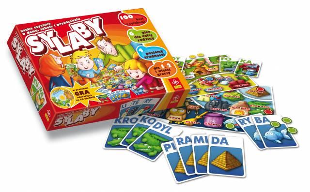 Edukacyjna gra dla całej rodziny. Gdy masz ochotę samodzielnie ułożyć pasjansa, zagrać w duecie albo w grupie osób - sięgnij po ""Sylaby"". Do dyspozycji jest aż 6 różnych wersji gry:łatwiejsze i trudniejsze. Wesoła i emocjonująca nauka czytania w formie gry zarówno dla początkujących, jak i bardziej zaawansowanych.