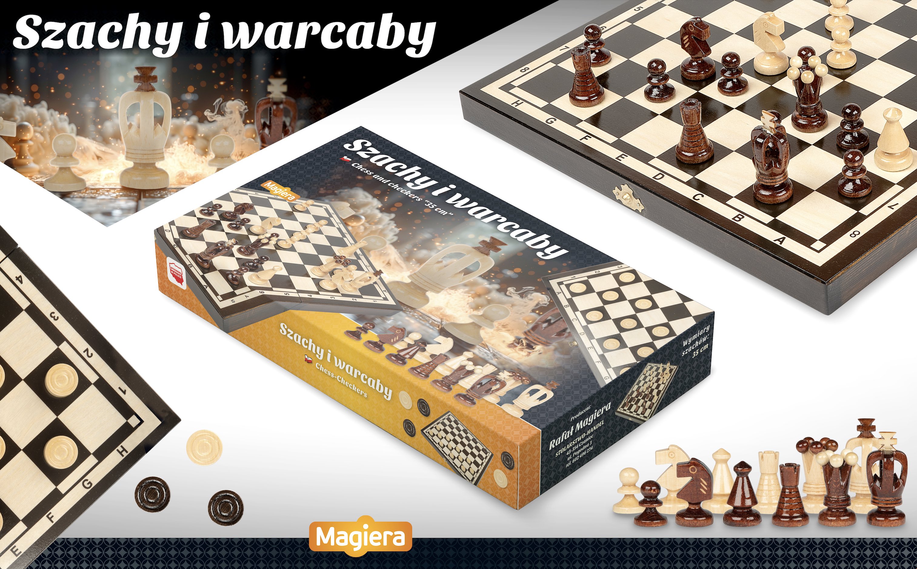 Szachy i Warcaby ""35"" to kombinacja dwóch gier, które zapewniają świetną zabawę na długie wieczory . Bardzo dobre dla dzieci do nauki gry w szachy i warcaby . Szachownica wyposażona jest we flokowaną wkładkę z przegródkami służącą do przechowywania figur szachowych i warcabowych , wykonana z drewna bukowego i brzozowego. Figury szachowe są wykonane z wysoko gatunkowego drewna grabowego oraz podklejone zielonym filcem . Wysokość króla to 6 cm . Całość została wykonana z najwyższą dbałością o szczegóły oraz zaimpregnowana lakierem zabezpieczając przed zabrudzeniami i wilgocią.