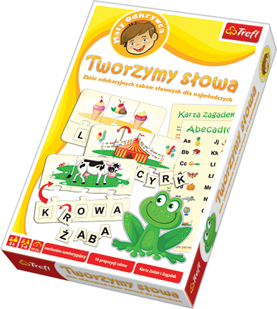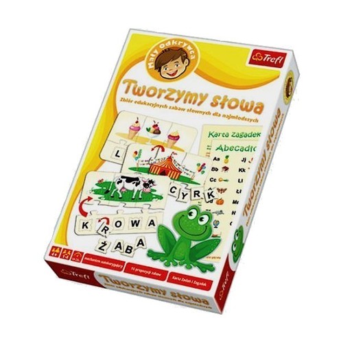 Tworzymy słowa to układanka edukacyjna dla dzieci, która w przyjazny sposób wprowadza dziecko w świat liter i słów. Dziecko rozwija dzięki niej umiejętności werbalne - poszerza i utrwala zasób słownictwa, ćwiczy łączenie obrazu graficznego wyrazu z desygnatem (podpisu z ilustracją) , trenuje umiejętność skupienia uwagi i logicznego myślenia. Gra jest doskonałym wstępem do nauki czytania i pisania.