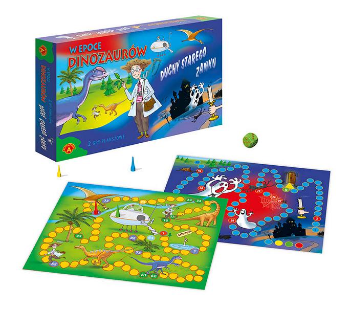 Gra ""W epoce dinozaurów"" przenosi graczy ""wehikułem czasu"" do pradawnego świata, w którym żyły dinozaury. Znajdując się w nim gracze muszą bardzo uważać na liczne niebezpieczeństwa i niespodzianki. Ten, kto będzie miał najwięcej szczęścia i wyjdzie cało ze wszystkich opresji, zwycięży. W grze ""Duchy starego zamku"" jej uczestnicy trafiają przypadkiem do starego, ale nie całkiem opuszczonego zamku. Wygra gracz, który zdoła uniknąć spotkania z duchami zamku i najszybciej znajdzie drogę do domu. Gra dla 2-4 graczy w wieku od 5 lat.
