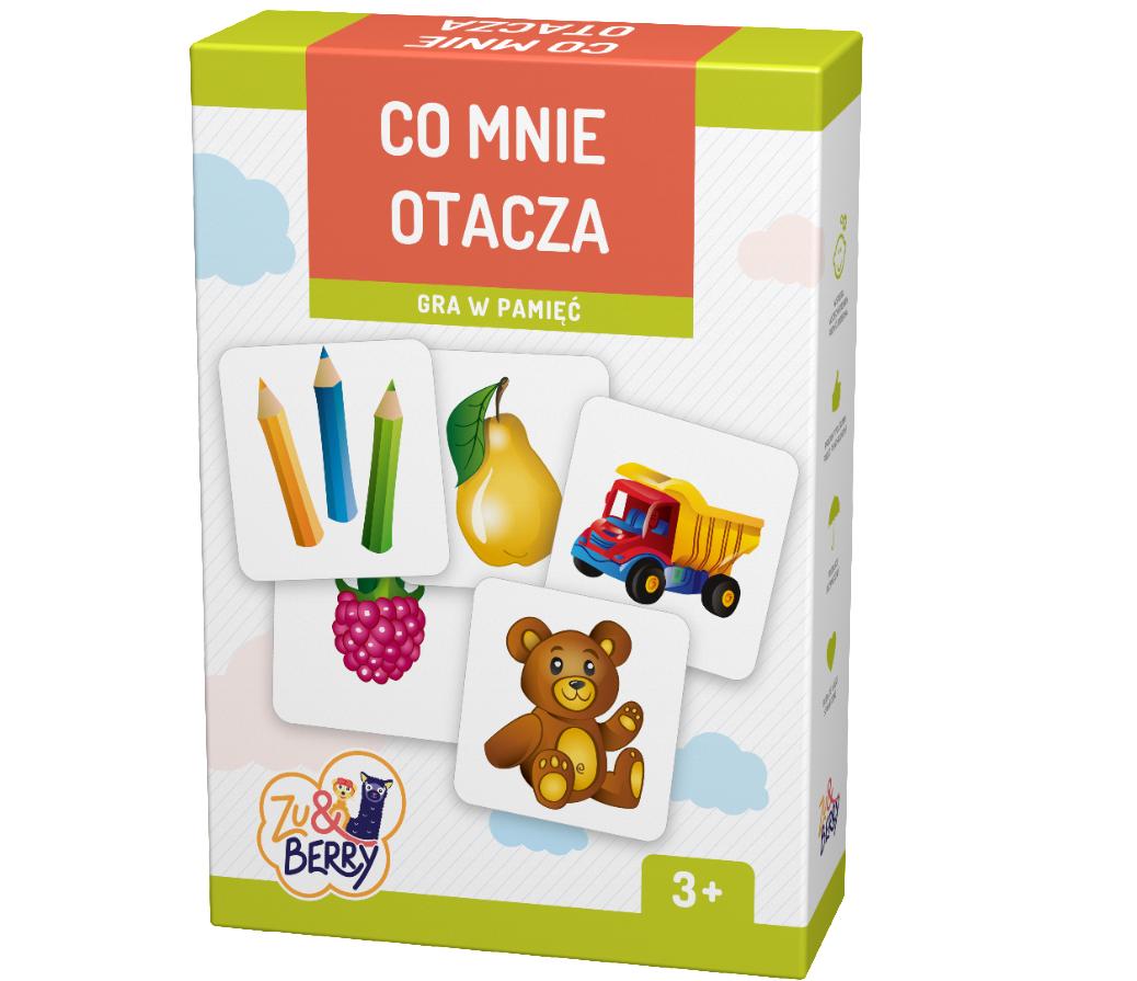 Co mnie otacza to doskonały trening pamięci już dla najmłodszych intelektualistów. 48 kart z obrazkami podzielone na 24 identyczne pary ilustruje przedmioty znajdujące się w bliskim otoczeniu dziecka w domu i przedszkolu.