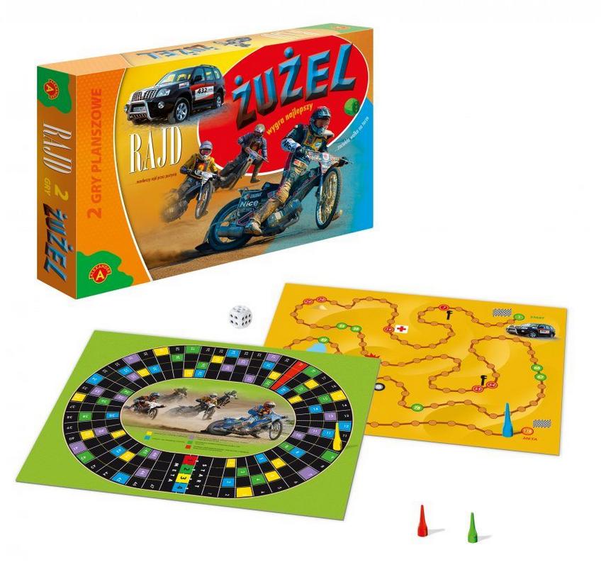 ,,Żużel"" - gra, w której będziesz uczestnikiem zawodów żużlowych. Ścigając się przeżyjesz mnóstwo emocji, próbując pokonać przeciwników. W trakcie jazdy możesz zmieniać pozycję na torze, będziesz przyspieszać i zwalniać, często ryzykując wypadkiem. Wygra ten, kto pomimo trudności i przeciwieństw dotrze pierwszy do mety. Gra dla 2-4 graczy od lat 5.