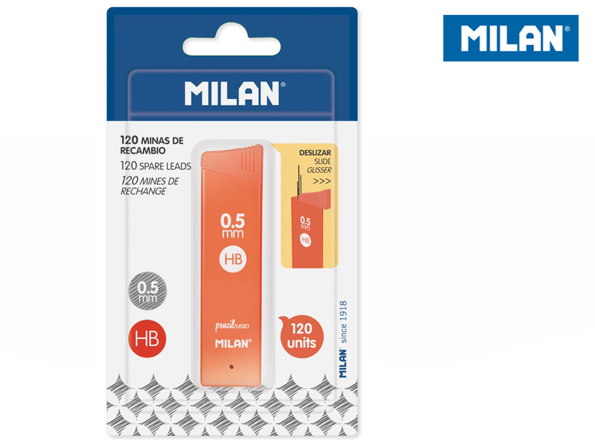 Grafity HB 0,5 mm do ołówków mechanicznych w plastikowym pudełku z szybką. Każde opakowanie zawiera 120 szt.