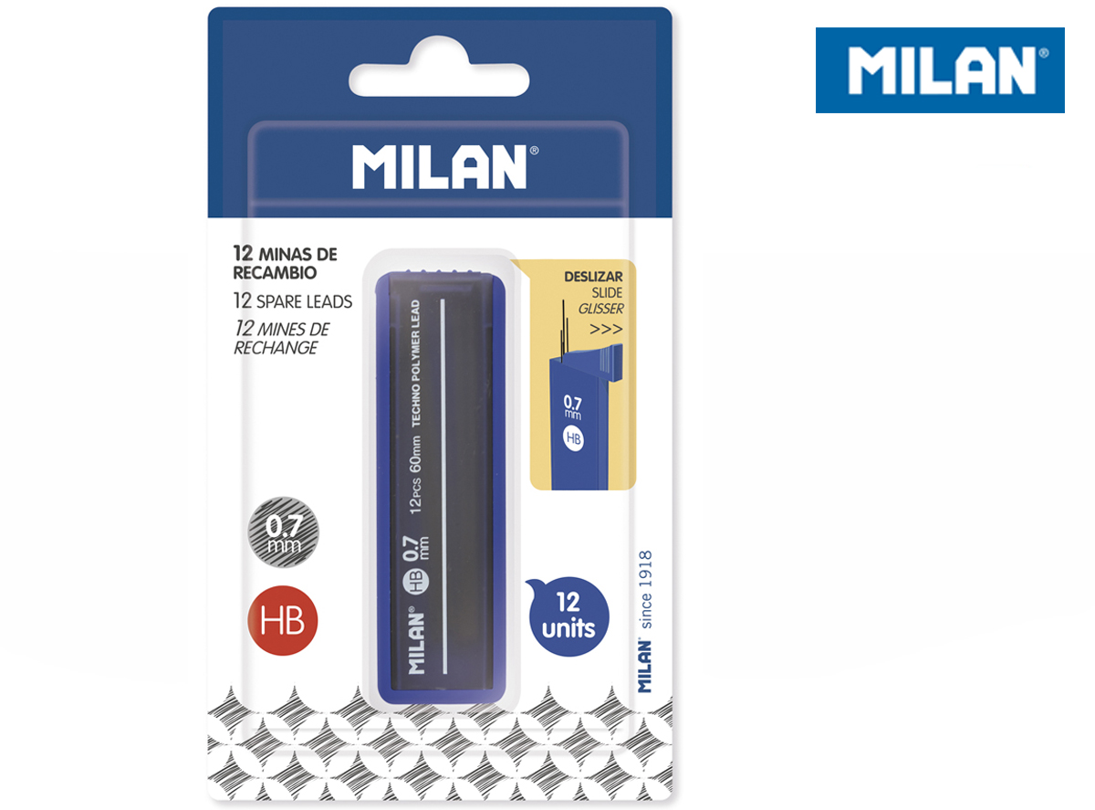 Grafity HB 0,7 mm do ołówków mechanicznych w plastikowym pudełku z szybką. Każde opakowanie zawiera 12 sztuk rysików.