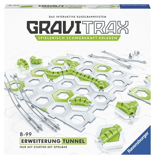 Połącz tunele, szyny i płyty podłogowe ze swoim zestawem startowym GraviTrax i zobacz jak Twoje kulki znikają w tunelach. Uważaj, bo możesz stracić swoją kulkę z oczu!