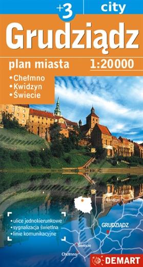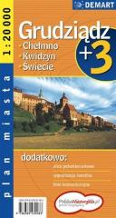 Plan Grudziądza w skali 1:20 000 plus centrum w skali 1:10 000, wzbogacony o plany najważniejszych miast w okolicy.