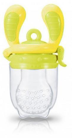 przeżuwania. Wygodne uchwyty idealnie pasują do małych rączek. Gryzak pomaga w dostarczaniu dziecku wartości odżywczych, które zawarte są w pokarmach stałych, bez obawy, że może się ono zadławić. CECHY: