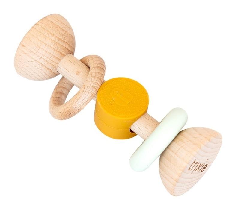 Zabawnie zaprojektowana z myślą o małych rączkach, ta grzechotka jest idealna dla noworodków i maluszków. Każdy nowy przyjaciel oferuje różnorodne bodźce sensoryczne dzięki miękkiemu silikonowi i gładkiemu drewno bukowemu, a zaokrąglone krawędzie oraz radosne kolory przyciągają wzrok dziecka. Grzechotka wydaje delikatny, satysfakcjonujący dźwięk, a silikonowe elementy świetnie nadają się do gryzienia, co wspiera rozwój umiejętności manualnych oraz koordynacji ręka-oko. Producent: Trixie Baby Skład: Drewno bukowe FSC(R) - 100%, silikon Rekomendowany wiek: 0m+