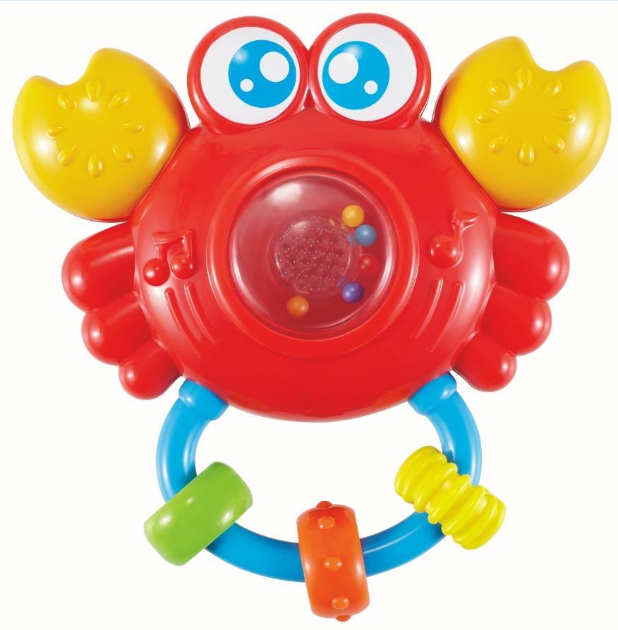 Zabawka wspomaga naukę chwytania i wrażliwość na dźwięki.