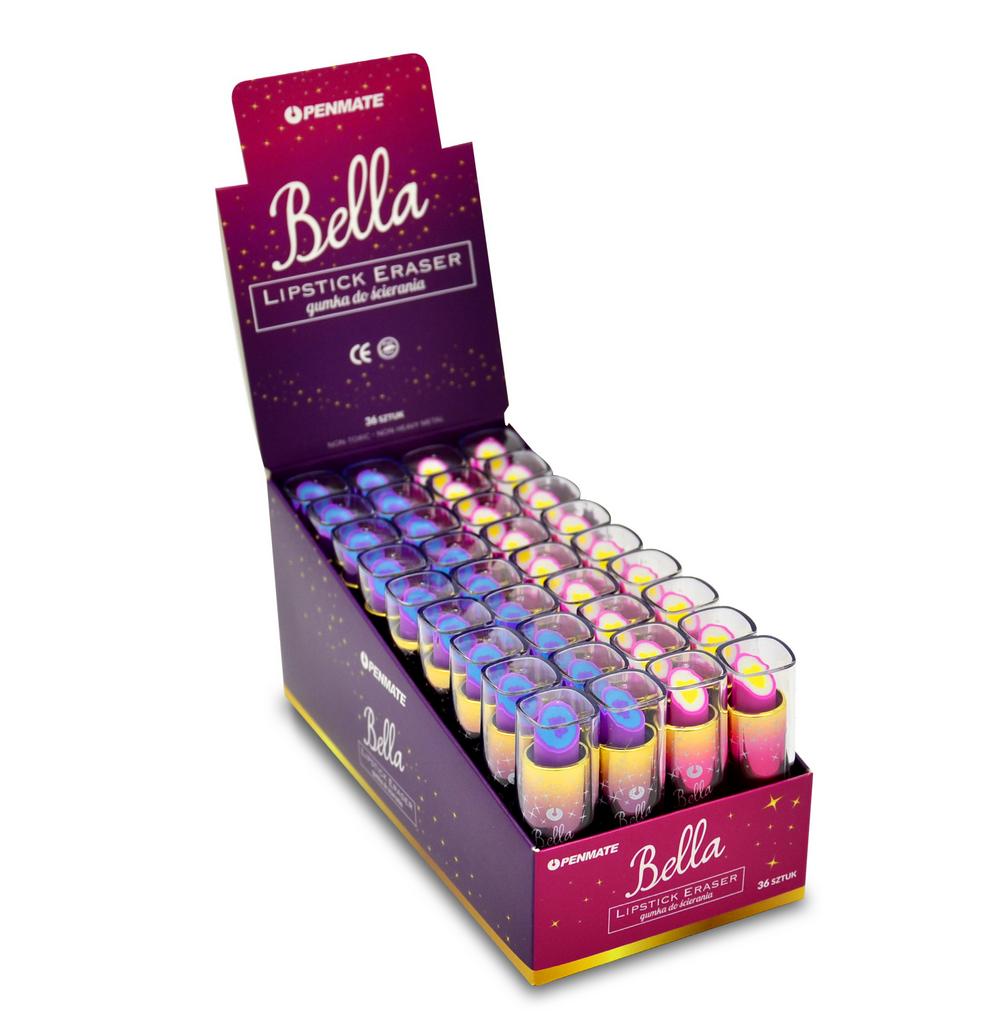 Wykonana z najwyższej jakości materiałów trzykolorowa gumka w kształcie szminki to prawdziwy gadżet dla małych dziewczynek i nie tylko! Miękka gumka jest idealna do ścierania grafitu, nie pozostawia śladów i smug. Jej rozmiar umożliwia przechowywanie nawet w małym w piórniku. Gumkę wyróżnia oryginalny design stylizowany na szminkę oraz piękny, soczysty kolor pokryty uroczymi gwiazdkami przez co gumka jest bardzo atrakcyjna wizualnie i łatwo znaleźć ją na biurku pośród licznych akcesoriów szkolnych czy biurowych. Ekspozycję produktu ułatwia bajkowy display zawierający aż 36 sztuk tych niezwykłych gumek.