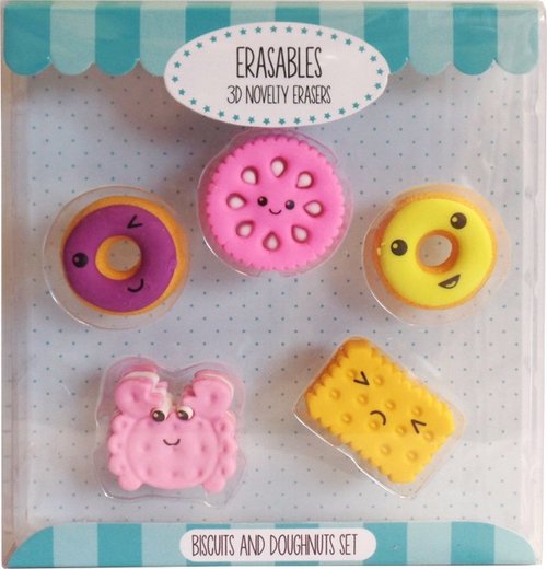 Blue Print gumki do mazania w kształcie herbatników i pączków.