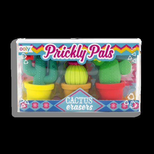 zawiera 3 kolorowe gumki w kształcie kaktusów w donicach. Gumeczki mają piękne