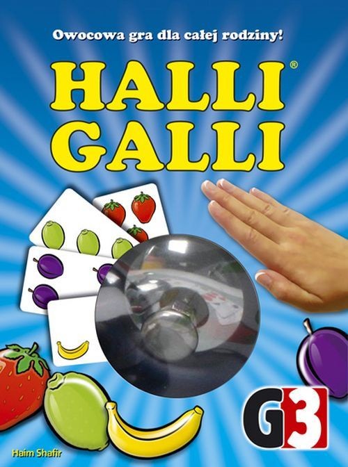 Wielka sałatka owocowa z bananami, truskawkami, limonkami i śliwkami! Każdy gracz kolejno odwraca kartę zmieniając skład sałatki. W chwili, gdy odkryte karty pokażą dokładnie 5 owoców tego samego rodzaju, pierwszy gracz, który zadzwoni dzwonkiem, wygrywa wszystkie odkryte karty. Uważaj jednak, żeby się nie pomylić! Jeżeli gracz zadzwoni dzwonkiem przez pomyłkę, a odkryte karty nie pokazują dokładnie 5 owoców tego samego typu, to musi on za karę oddać każdemu z pozostałych graczy jedną kartę ze swojej zakrytej talii. Celem gry jest zdobycie największej liczby kart. Szybka i emocjonująca gra na imprezę i rodzinne spotkania. Dostarcza wiele zabawy osobom w każdym wieku. PUDEŁKO ZAWIERA: 56 kart, 1 dzwonek, instrukcja. Liczba graczy: 2 - 6.Czas gry: 15 min.