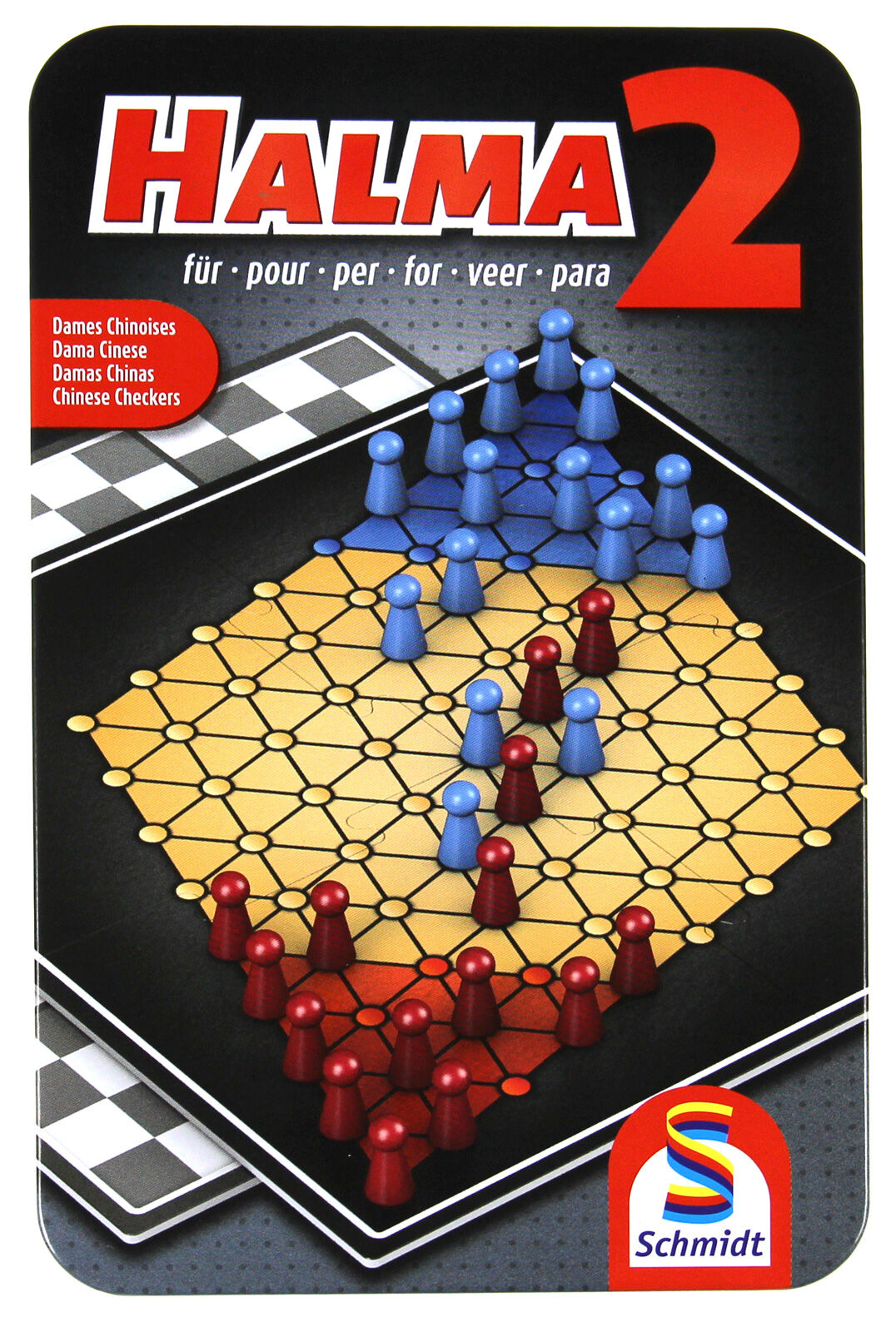 Poprzez ułożenie kwadratów na stronie z szachownicą, gracze mają większą swobodę ruchów. Druga strona daje mniej możliwości ruchu, przez co jest trudniejsza. Celem każdego gracza, jest przedostanie się swoimi pionkami na drugą stronę planszy - do obozu przeciwnika, poprzez umiejętne przeskakiwanie nad pionkami swoimi i przeciwnika.