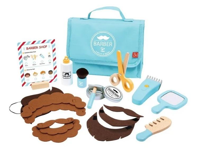 Zestaw Małego Barbera to kreatywna zabawka, która pozwala dzieciom wcielić się w rolę fryzjera lub barbera. W zestawie znajduje się aż 22 elementy, w tym wibrująca maszynka do strzyżenia, filcowe brody i wąsy, akcesoria fryzjerskie oraz materiałowa torba na rzepy, która ułatwia przechowywanie.