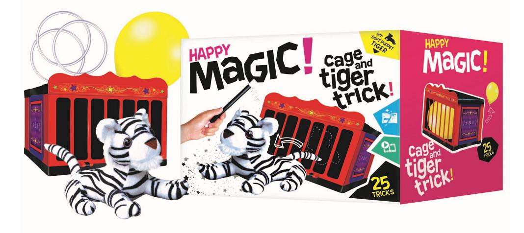 Magia dla najmłodszych. Uwolnij pluszowego tygryska z zamkniętej klatki! Poznaj tajniki magii. Naucz się 25 innych sztuczek i zadziw swoich kolegów. Zawartość: • Pluszowy tygrysek • Klatka • Różdżka • I wiele więcej